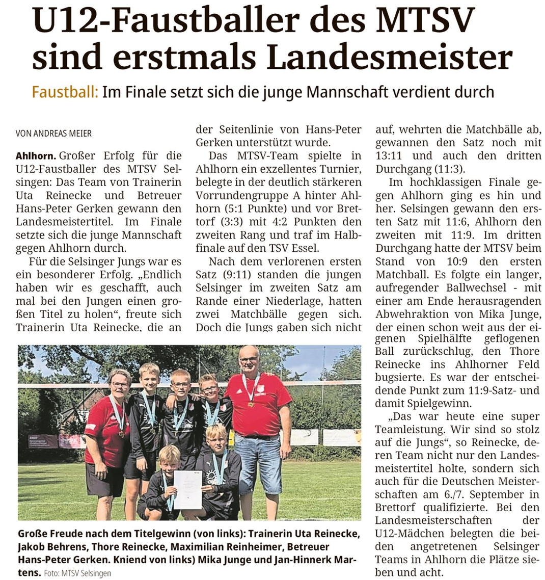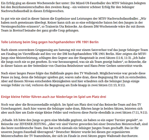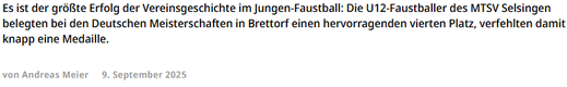 Vierter Platz bei Deutschen Meisterschaften für U12 des MTSV