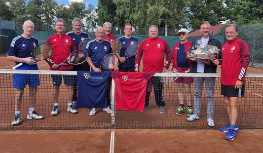 Am letzten Samstag (06. September) wurden die neuen Trainingsanzüge für die Selsinger Tennis-Senioren offiziell übergeben. Vor der Übergabe spielten die Senioren zwei Stunden Doppel mit wechselnden Partnern. Die tollen Trainingsanzüge hatte der Geschäftsführer Stefan Heins von der BST (Biogas Service Tarmstedt) den Selsinger Tennis-Senioren gestiftet. Für diese Unterstützung erhielt Stefan Heins als kleines Dankeschön einen Präsentkorb, den der Spartenleiter Edgar Milosevic-Tamke überreichte. Dank nochmals an Stefan Heins, der in den letzten Jahren kontinuierlich die Tennissparte des MTSV Selsingen großzügig unterstützte. Stefan Heins ist der Serien-Sponsor der Selsinger Tennissparte. Nach der Übergabe wurde bei leckerem Grillgut noch der eine oder andere informative Klönschnack gehalten, bevor man in das Wochenende ging.