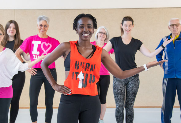Bei uns steht der Spaß an erster Stelle! Mitmachen kann jede/r ohne Vorerfahrungen, jeden Alters, nach OPs, nach der Schwangerschaft, mit leichten gesundheitlichen Einschränkungen (ich finde immer eine „Lösung“) und/oder mit „zwei linken Füßen“ ;) Wir sind eine „offene“ nette Gruppe. Meine Teilnehmerinnen lieben es, sich mit Freude nach unterschiedlichsten Rhythmen (Salsa, Merengue, Cumbia, Tango, Bachata, Charleston, Rock ‚n Roll, Samba, Socca) und aktuellen Beats (z.B. APT) zu bewegen, aber auch gleichzeitig ihre Balance und Koordination zu schulen sowie den Kopf/das Gehirn zu trainieren. Dieses ist für die „Longevity“ (gesunde Langlebigkeit) im Alter besonders wichtig. Jede/Jeder kann gut folgen, da die Choreografien einfach, aber nicht langweilig, gehalten sind. Alle Bewegungen werden angezeigt und zusätzlich verbal unterstützt.